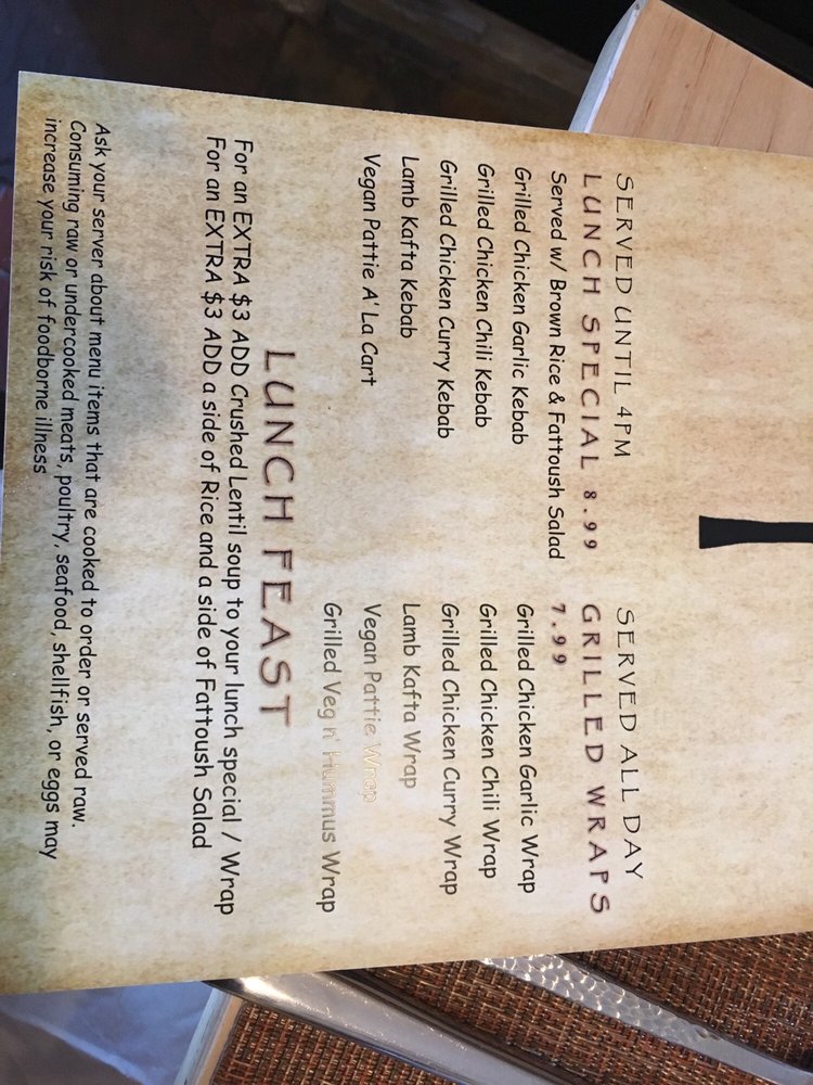 Hummus with your choice of a dinner-sized skewer of any of our chicken kebab or kafta.